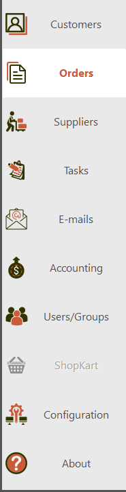 Icons on Top Right: Click on door icon to log out of the program, other icons are window standard icons to minimize, maximize or exit the program.
