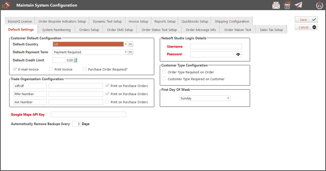 Customer Default Configuration - The settings you choose in this section will apply to all new customers when creating a customer record. Choose the selections that will be most common for all customers. You will be able to easily change these choices for each customer.