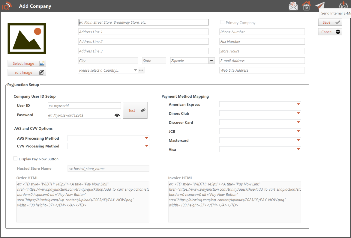 Display Pay Now Button Check Box: When sending emails to customers that have Order acknowledgments or Invoices, you can have a "Pay Now" button to allow your customers a secure portal to submit a payment. If a payment is submitted, you receive an email from PayJunction indicating a payment has been received for an order or invoice.